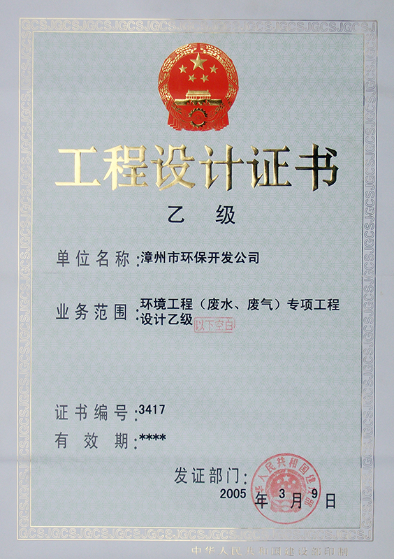 1、環(huán)境工程(廢水、廢氣)專項工程設(shè)計乙級,證書編號:3417;